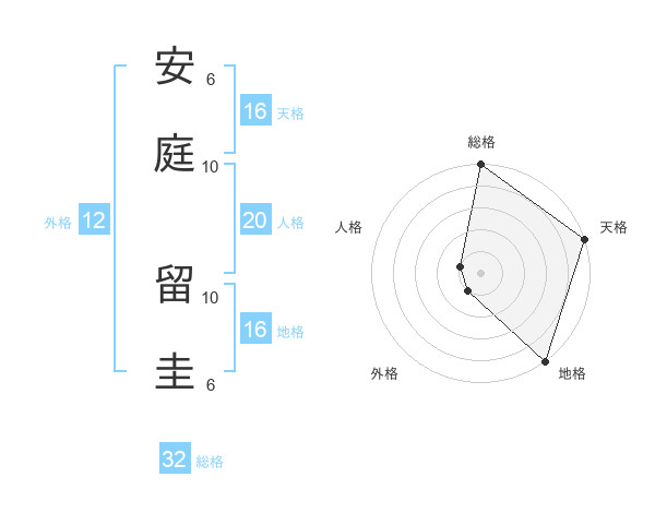 安庭 留圭さんの総格は32画の5点!