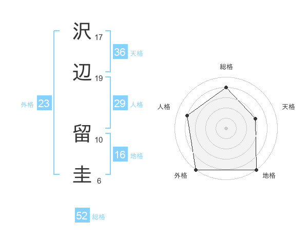 沢辺 留圭さんを姓名の画数から五運を鑑定