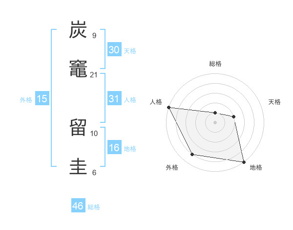 炭竈 留圭さんを姓名の画数から五運を鑑定