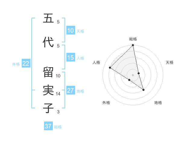 五代 留実子さんの総格は37画の5点!