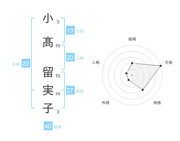 小髙 留実子さんの天格は13画の5点!