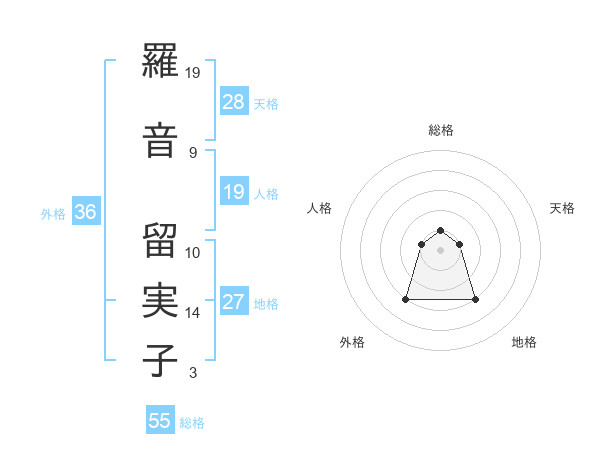 羅音 留実子さんの天格は28画の1点!