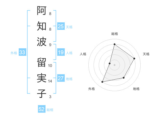 阿知波 留実子さんを姓名の画数から五運を鑑定