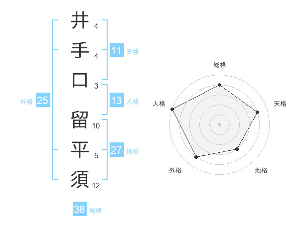 井手口 留平須さんを姓名の画数から五運を鑑定