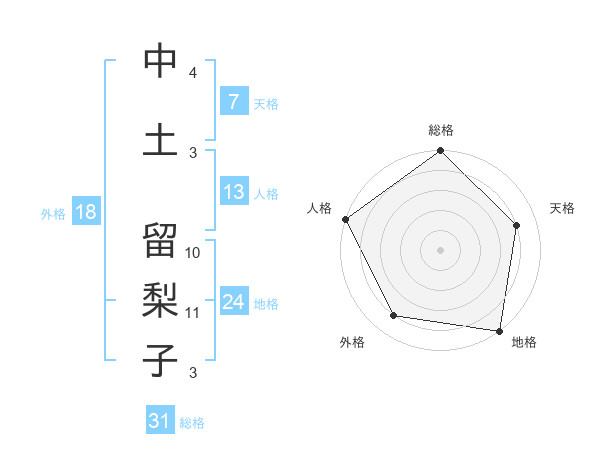 中土 留梨子さんを姓名の画数から五運を鑑定