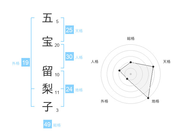 五宝 留梨子さんを姓名の画数から五運を鑑定