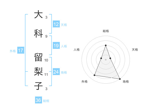 大科 留梨子さんを姓名の画数から五運を鑑定