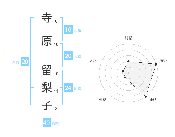 寺原 留梨子さんの天格は16画の5点!