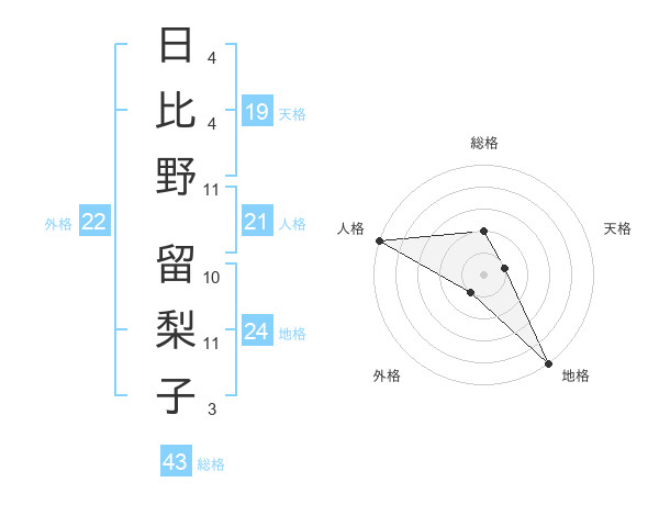 日比野 留梨子さんを姓名の画数から五運を鑑定