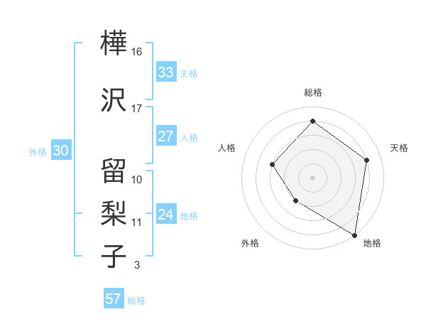 樺沢 留梨子さんの総格は57画の4点!