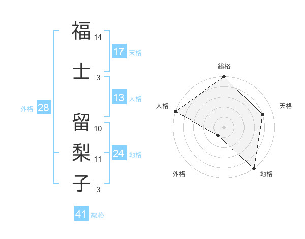 福士 留梨子さんを姓名の画数から五運を鑑定