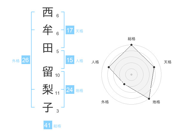西牟田 留梨子さんを姓名の画数から五運を鑑定