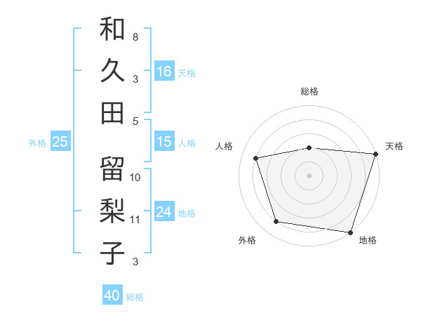 和久田 留梨子さんを姓名の画数から五運を鑑定