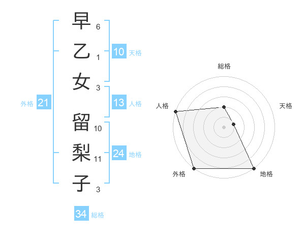早乙女 留梨子さんを姓名の画数から五運を鑑定