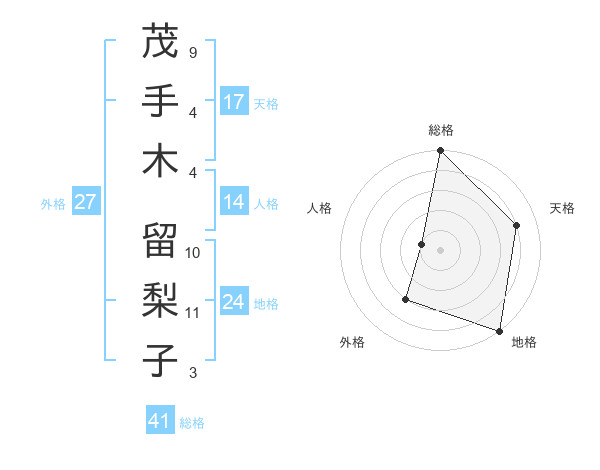茂手木 留梨子さんを姓名の画数から五運を鑑定