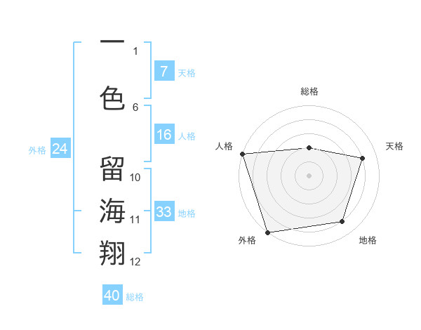 一色 留海翔さんを姓名の画数から五運を鑑定
