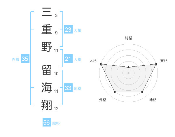 三重野 留海翔さんの天格は23画の5点!