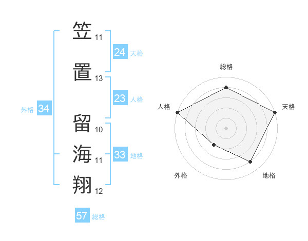 笠置 留海翔さんを姓名の画数から五運を鑑定