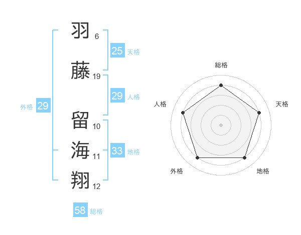 羽藤 留海翔さんの総格は58画の4点!