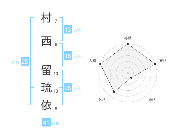 村西 留琉依さんの天格は13画の5点!