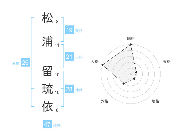 松浦 留琉依さんの総格は47画の5点