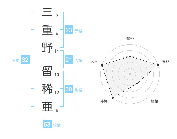 三重野 留稀亜さんを姓名の画数から五運を鑑定