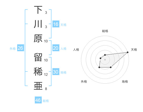 下川原 留稀亜さんを姓名の画数から五運を鑑定