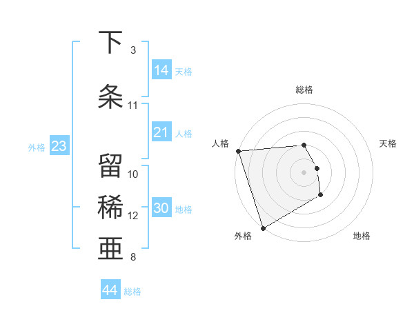 下条 留稀亜さんを姓名の画数から五運を鑑定