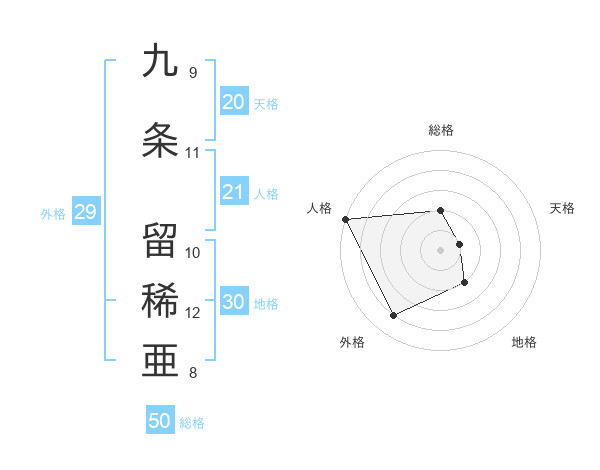 九条 留稀亜さんの総格は50画の2点!