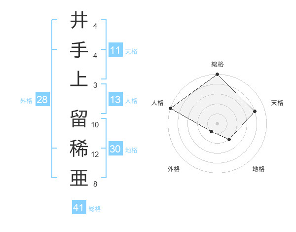 井手上 留稀亜さんを姓名の画数から五運を鑑定