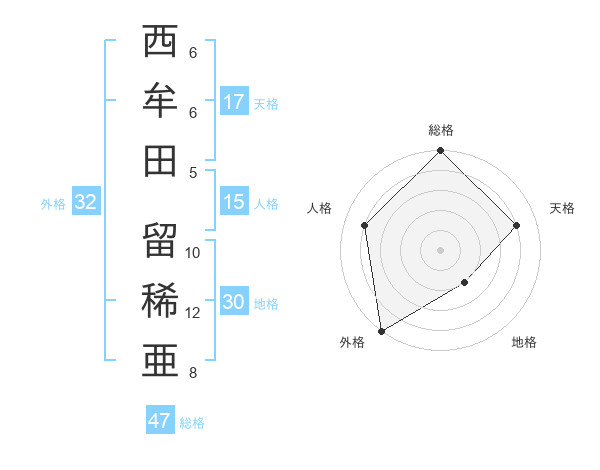 西牟田 留稀亜さんを姓名の画数から五運を鑑定