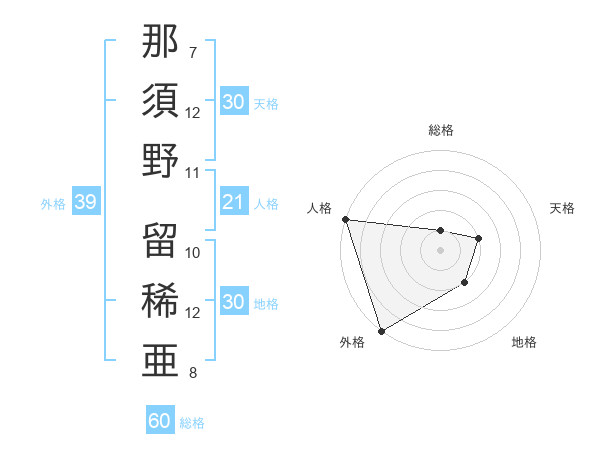 那須野 留稀亜さんを姓名の画数から五運を鑑定