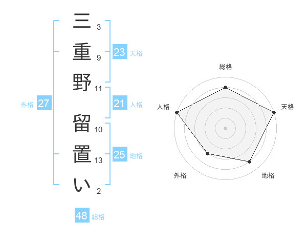三重野 留置いさんを姓名の画数から五運を鑑定
