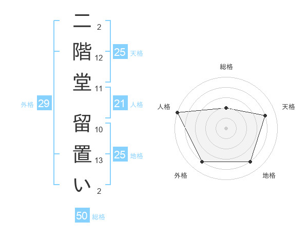 二階堂 留置いさんを姓名の画数から五運を鑑定