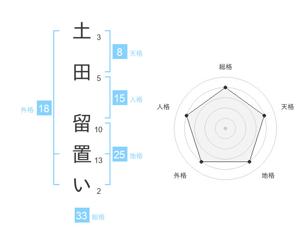 土田 留置いさんの総格は33画の4点!