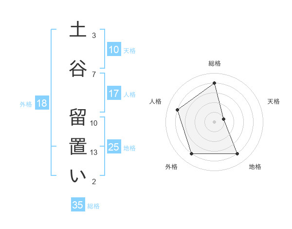 土谷 留置いさんの総格は35画の4点!