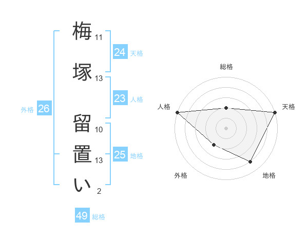 梅塚 留置いさんを姓名の画数から五運を鑑定