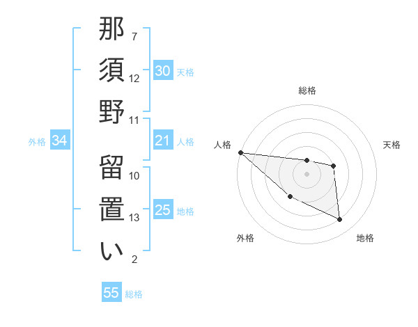 那須野 留置いさんの総格は55画の1点!