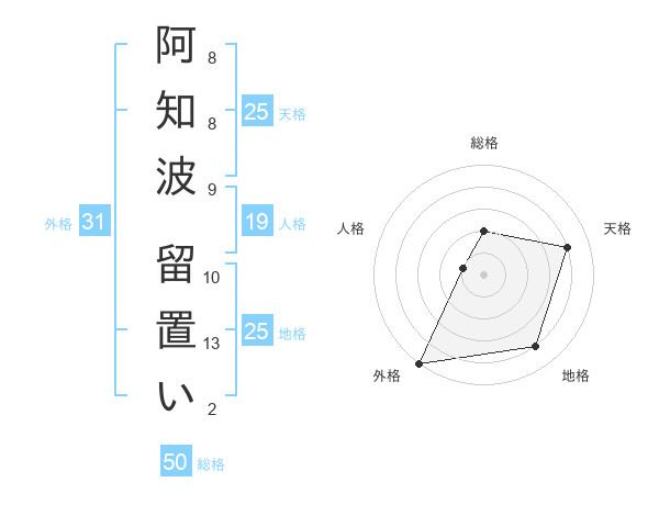 阿知波 留置いさんを姓名の画数から五運を鑑定