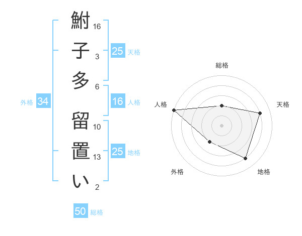 鮒子多 留置いさんを姓名の画数から五運を鑑定