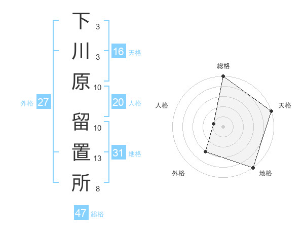 下川原 留置所さんを姓名の画数から五運を鑑定