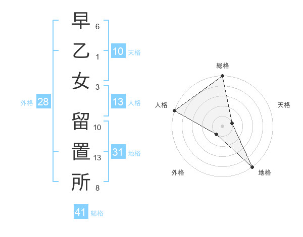早乙女 留置所さんを姓名の画数から五運を鑑定