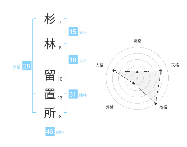 杉林 留置所さんの総格は46画の1点!