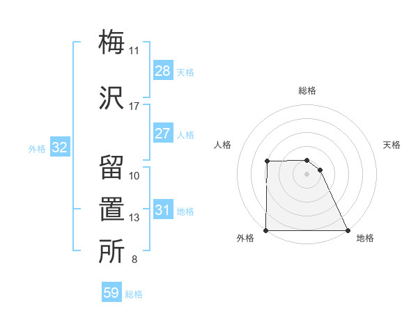 梅沢 留置所さんの地格は31画の5点!