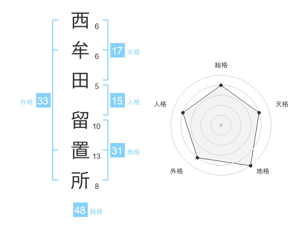 西牟田 留置所さんを姓名の画数から五運を鑑定