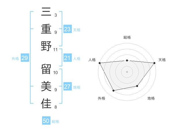 三重野 留美佳さんの総格は50画の2点!