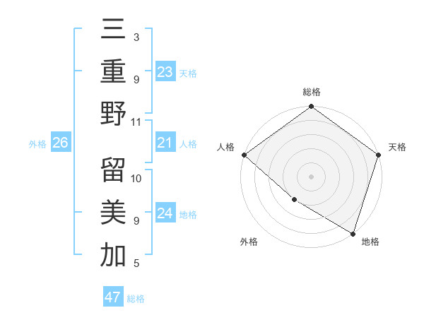 三重野 留美加さんを姓名の画数から五運を鑑定