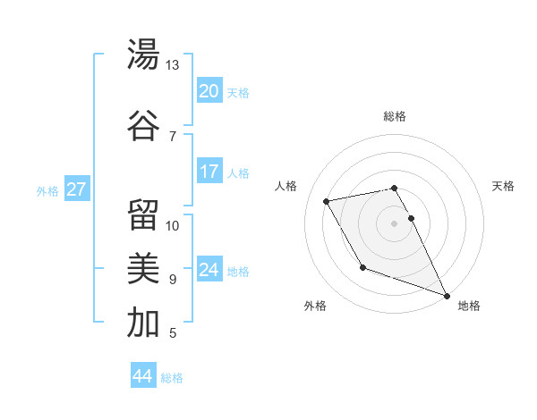 湯谷 留美加さんを姓名の画数から五運を鑑定