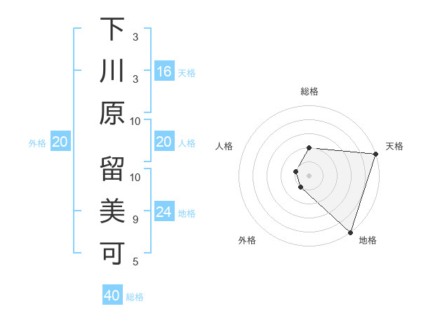 下川原 留美可さんを姓名の画数から五運を鑑定