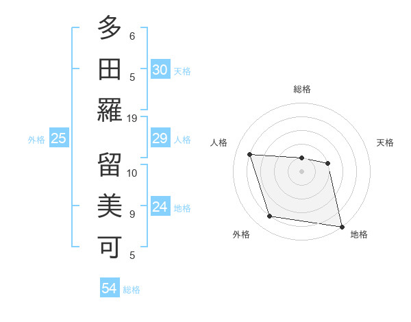 多田羅 留美可さんを姓名の画数から五運を鑑定